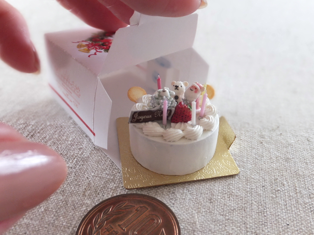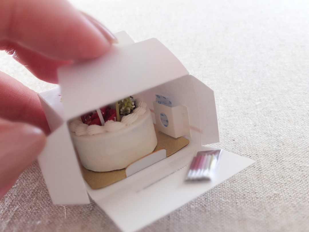 ケーキはケーキトレーに接着済(ケースや箱には仮止め)