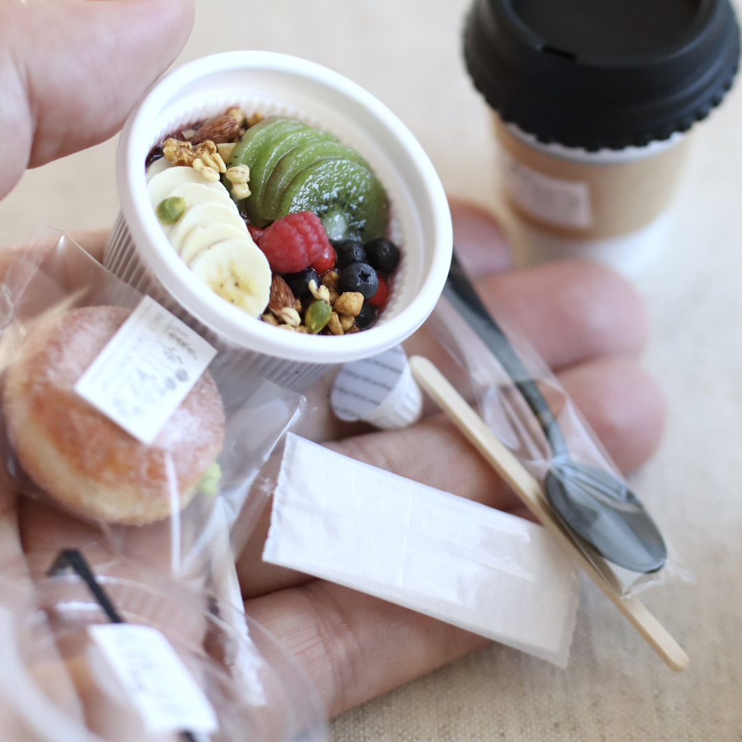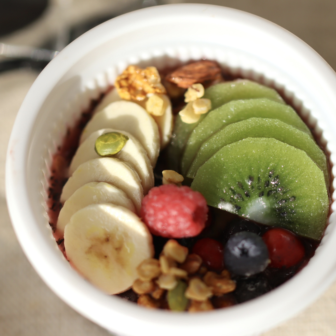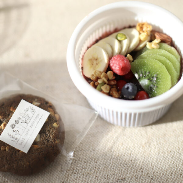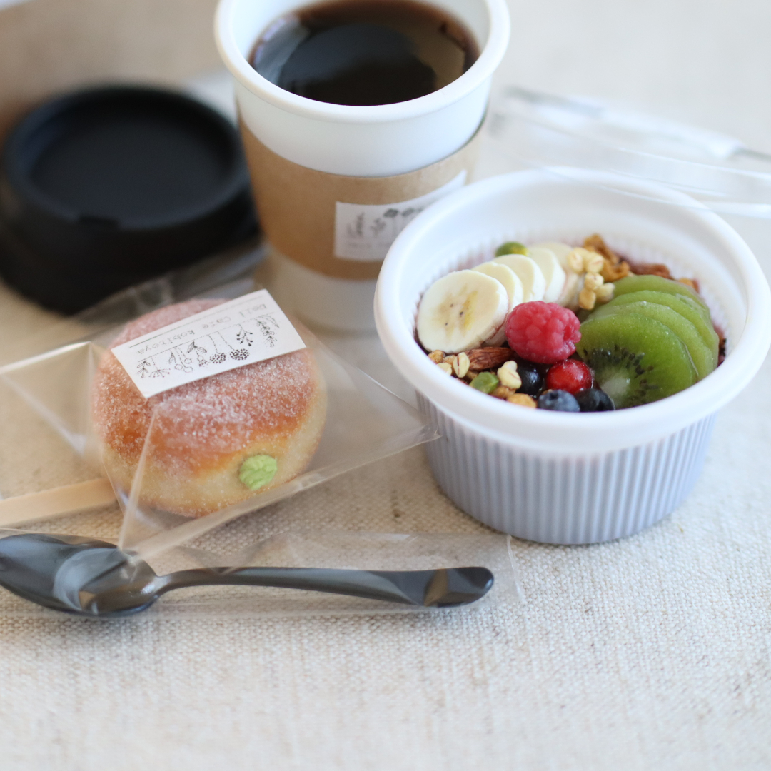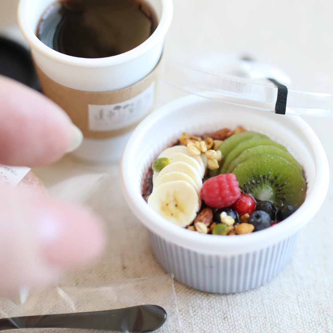 アサイーボウル、ドーナツ(マラサダ)、ホットコーヒー
