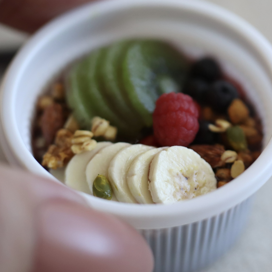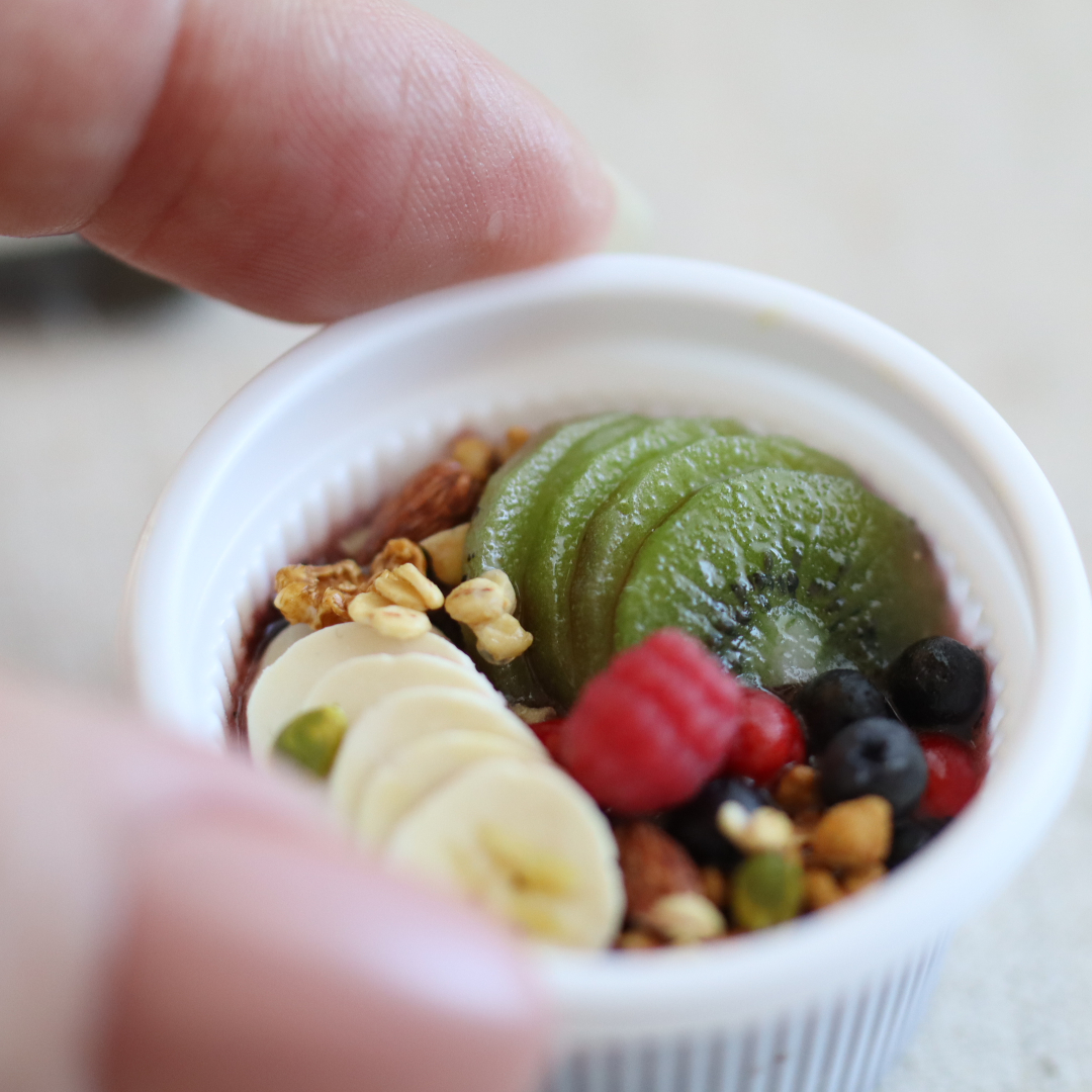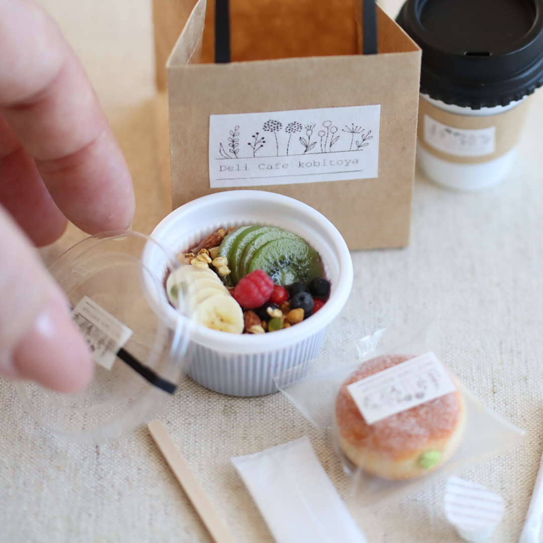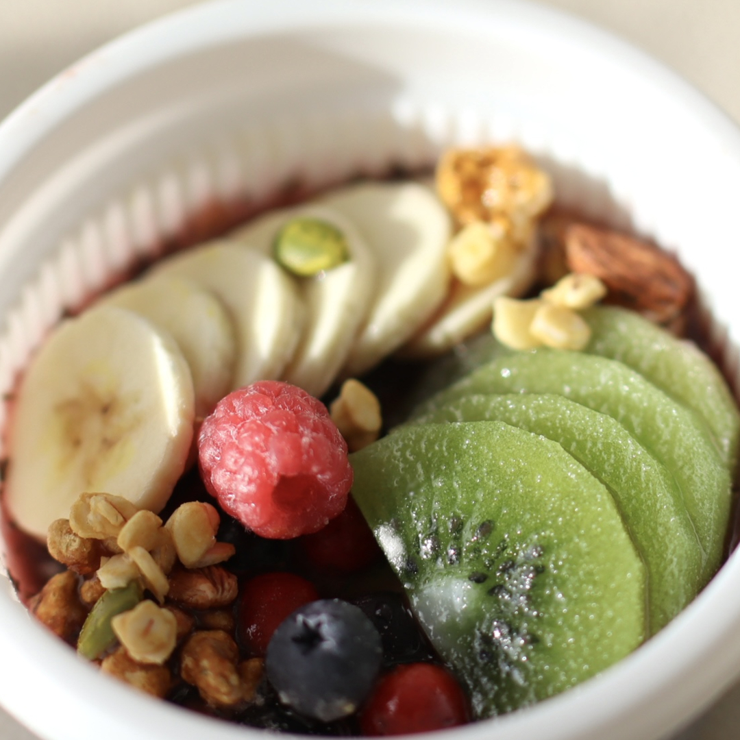 アサイーボウル、ドーナツ(マラサダ)、ホットコーヒー