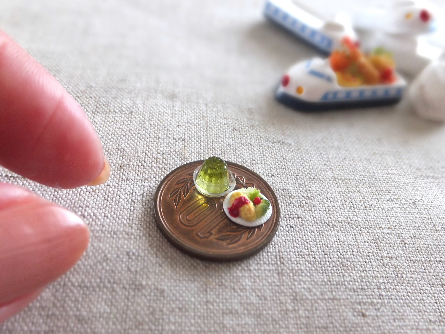 おまけとして 1/24 scale (お皿0.9cm)のオムライスも作りました。