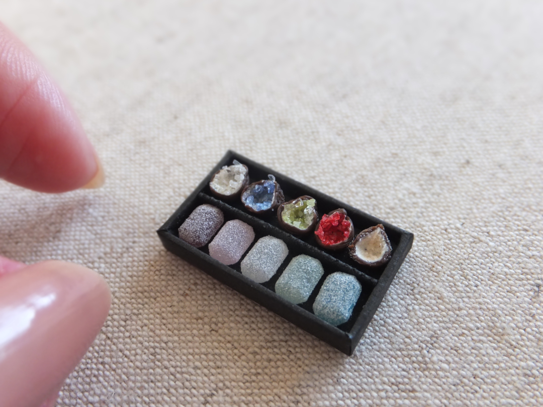 ミニチュア 宝箱 化石 石磨き 鉱物パフェ