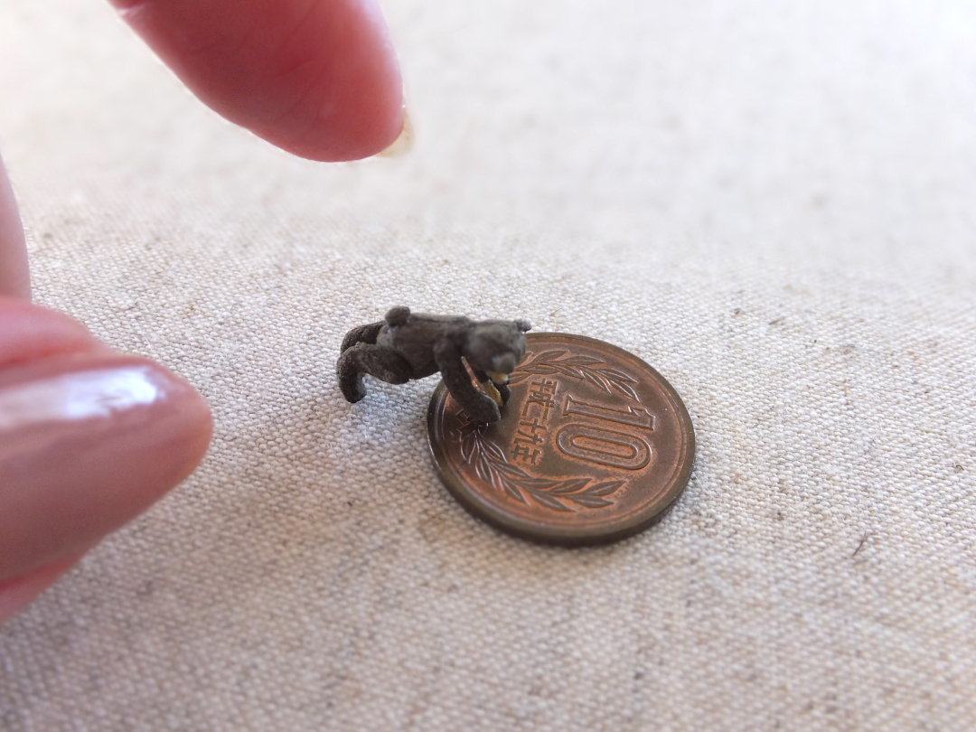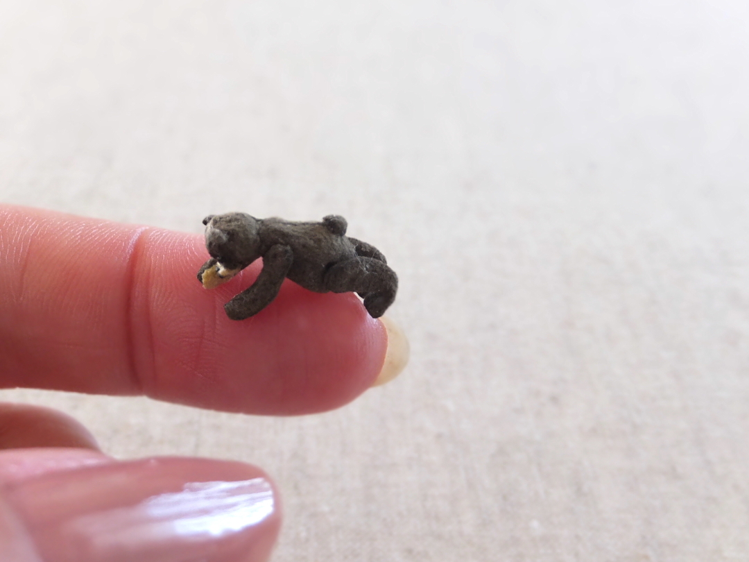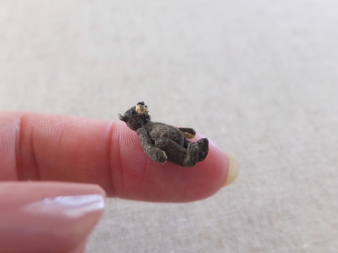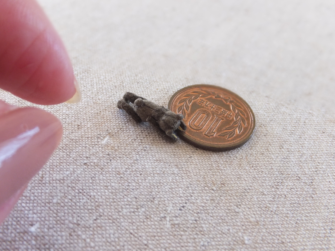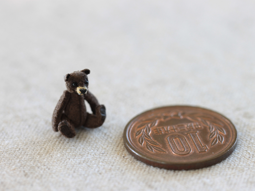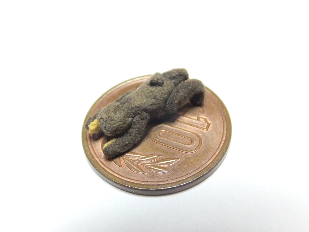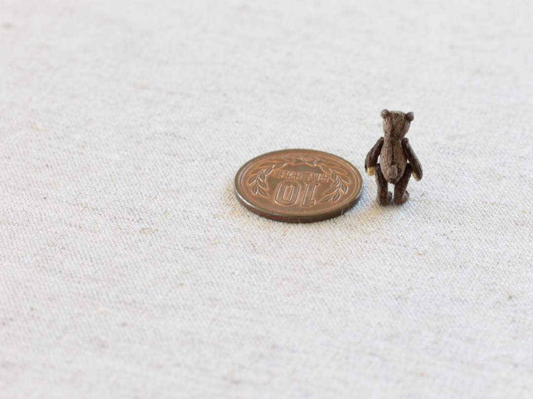 待つ間に ミニミニテディベアを縫い中 頭位4mm